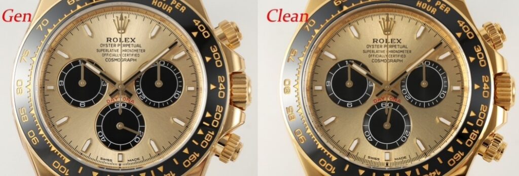 Take the Rolex Panda Daytona for example, VS Factory’s version restores the unique dial texture of the GEN, with smooth and rounded edges on the markers.