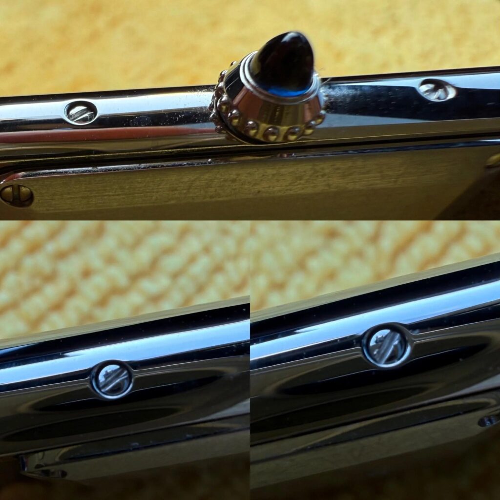 - Look at the seam between the crystal and the metal case. The good stuff is tight with zero glue overflow.