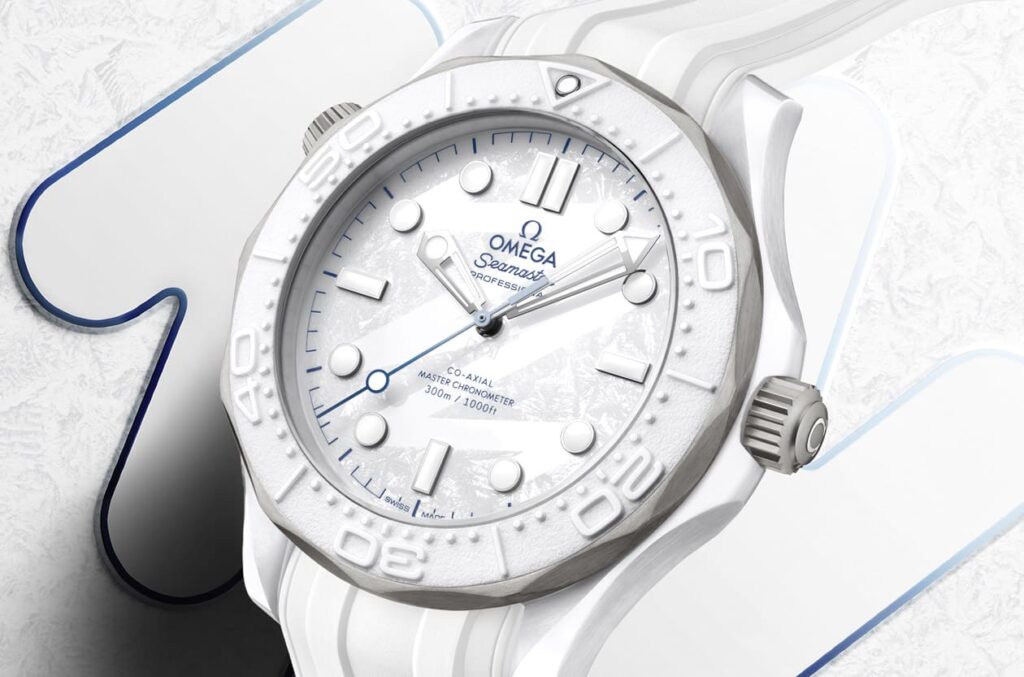 This model was specially released for the Milan Winter Olympics, so of course replica factories won’t miss it. The pure white ceramic case symbolizes the color of snow, paired with vibrant blue indices, giving a feeling of a winter ice festival. It stands out brightly among Omega’s recent wave of black and orange color schemes. Its dial has a special treatment, showing a frosty texture and a subtle sense of accumulated snow, which looks really beautiful.