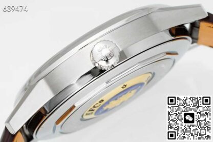 6点位置的高仿手表月相显示,是整个表盘最具诗意的元素。在这个圆形窗口中,金色的月亮和星星在深蓝色的背景上缓缓移动,模拟着月亮的阴晴圆缺。当月相功能出现在现代腕表上时,不仅仅是一种功能显示,也代表着一种对传统的怀念,对自然规律的敬畏。而且还具备日期显示功能,通过中央指针指示日期,实用的同时,也保证了盘面整体的平衡性。APS工厂高仿手表浪琴军旗L4.815.4.78.2的表壳采用和正品同款的精钢材质,对于日常生活中的小剐蹭基本免疫,经过抛光等处理,呈现出流畅自然的弧度。表径为38.50毫米,这个尺寸既能满足现代审美,又还原了经典腕表的韵味,适台多数人佩戴。表壳厚度为12.40毫米,整体比例协调。高仿手表的精钢表冠确保了与整体材质的一致性,同样做了防滑设计,防止打滑的同时,看起来也更加细腻精致。