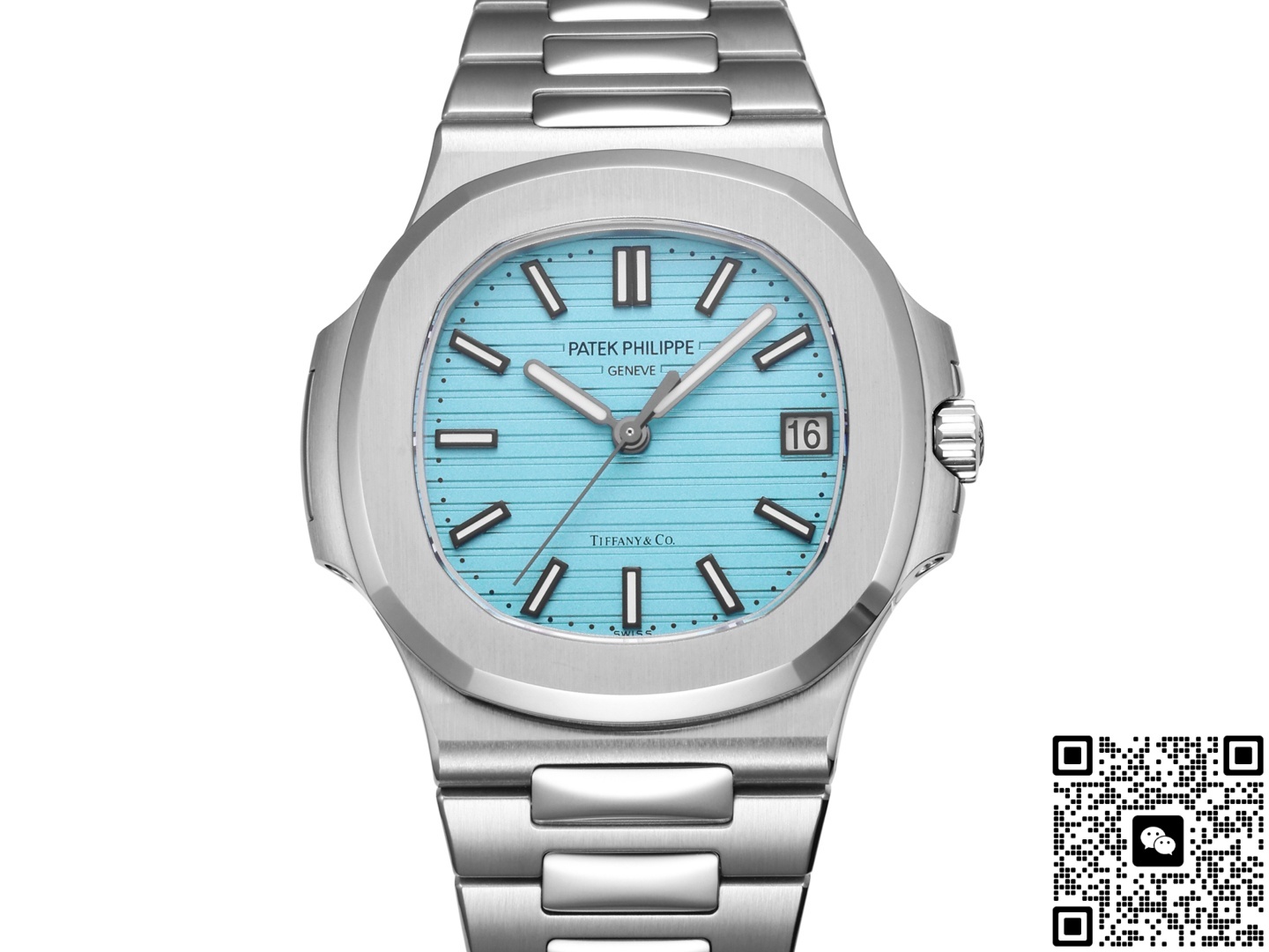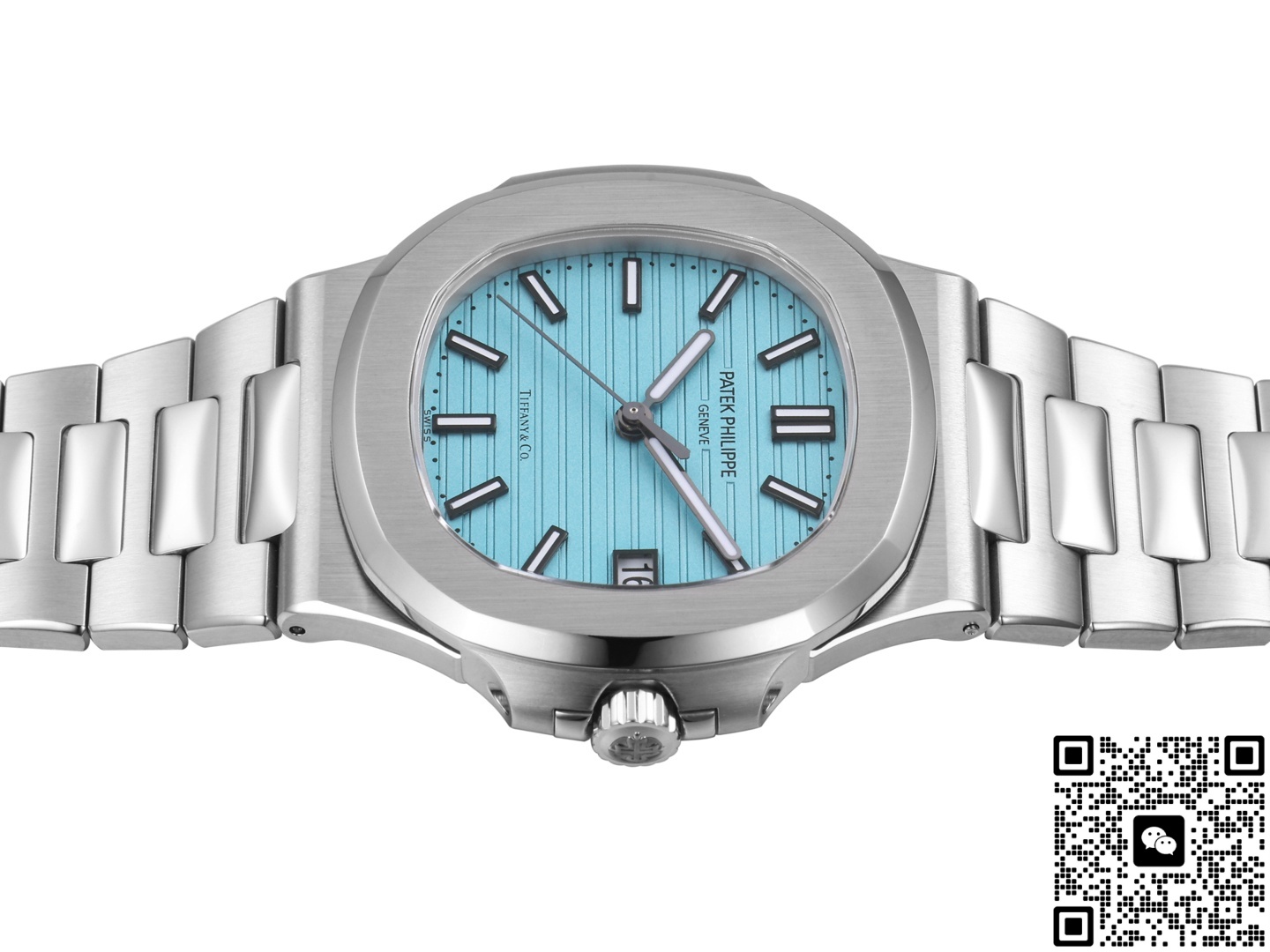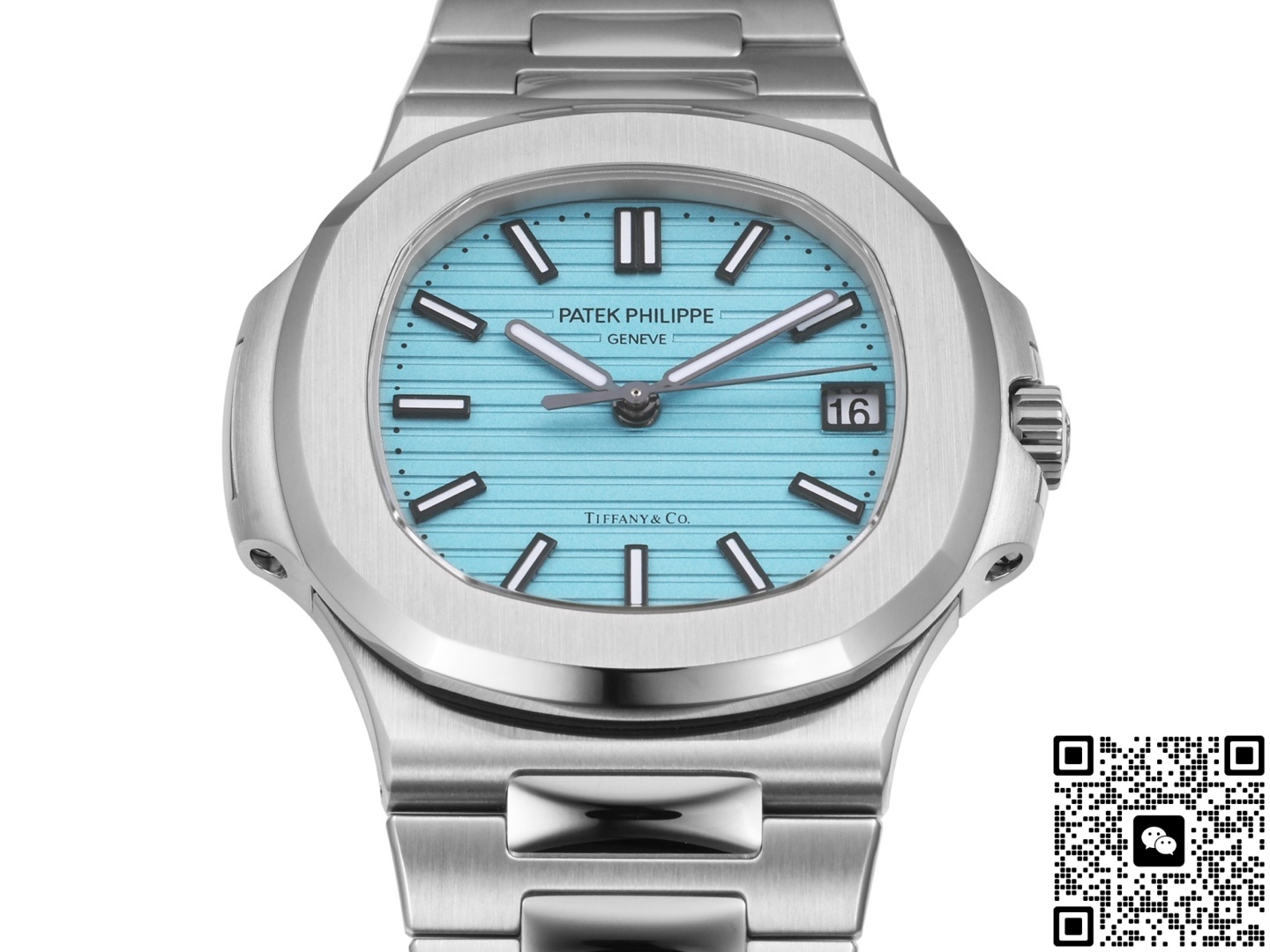 BBF厂高仿手表百达翡丽鹦鹉螺5711-1A-018把正品的蒂芙尼蓝还原到了极致,为了还原正品蒂芙尼蓝盘在不同光线下的立体感和深度,BBF工厂采用进口三宝铜材质胚面,在经过多层渐变喷涂技术处理之后让盘面边缘在特定角度下呈现出微微的深色阴影,从而营造出由浅至深的视觉过渡效果,这是一种明亮,清爽,带着轻微绿色调的淡蓝,还原难度可想而知,可BBF工厂做到了,甚至比3K工厂蓝得偏绿的蒂芙尼色更加还原正品。表壳结构同步正品的舷窗式三层结构,八角形的外圈外圆内方,表盘横向压纹很清晰,立体感也强,在光线折射下呈现波光粼粼的效果。立体条钉刻度边缘进行了细致的打磨,而且瑞士 Super-LumiNova BG-W9纯白夜光填充的很均匀,灯光下也不会发黄。日历字体重新开模印刷,而且把字体加粗了,解决了3K工厂字体偏细的问题。总结来说,BBF工厂对比3K工厂百达翡丽蒂芙尼蓝在表盘方面细节表现好的太多了。