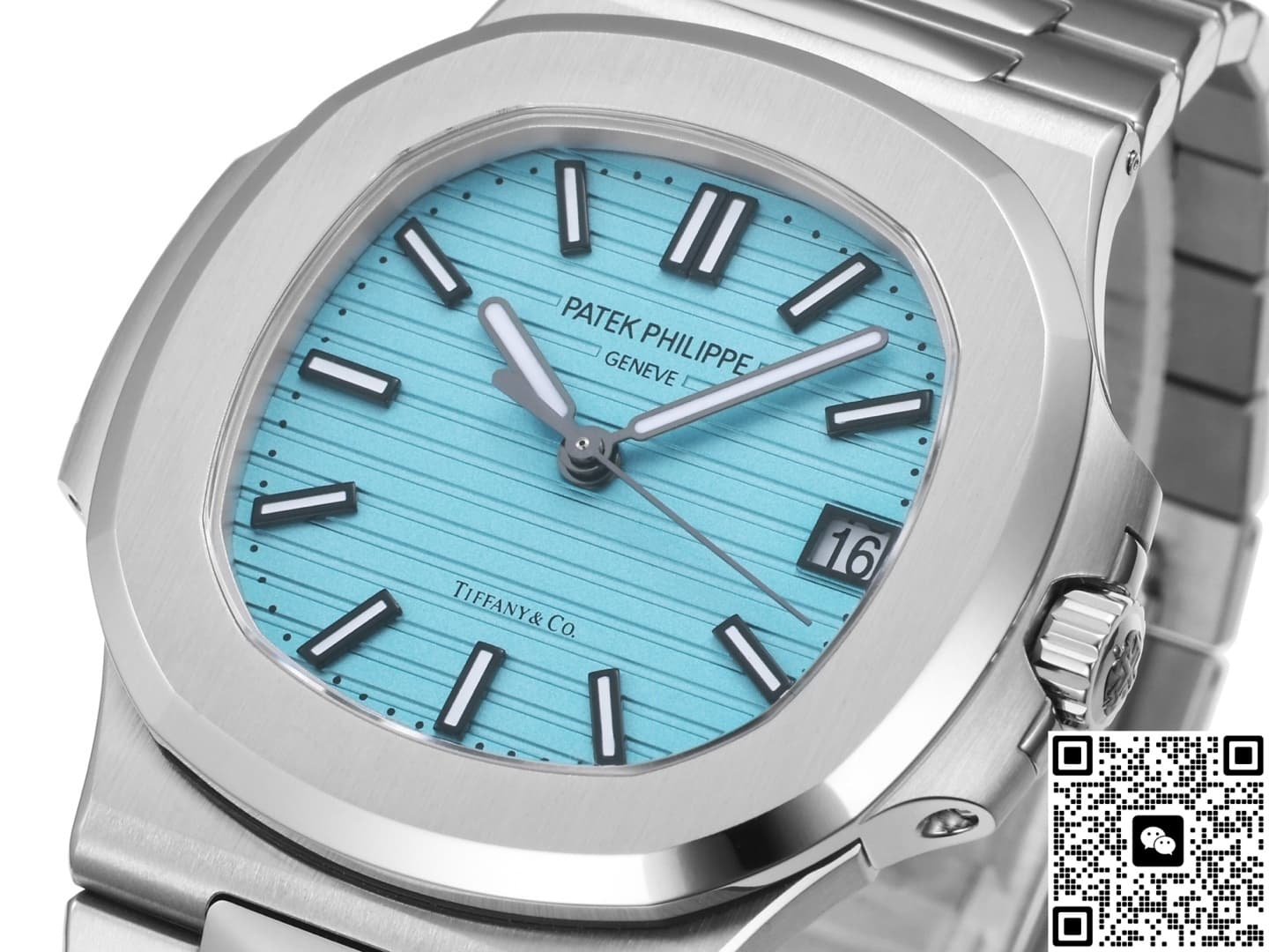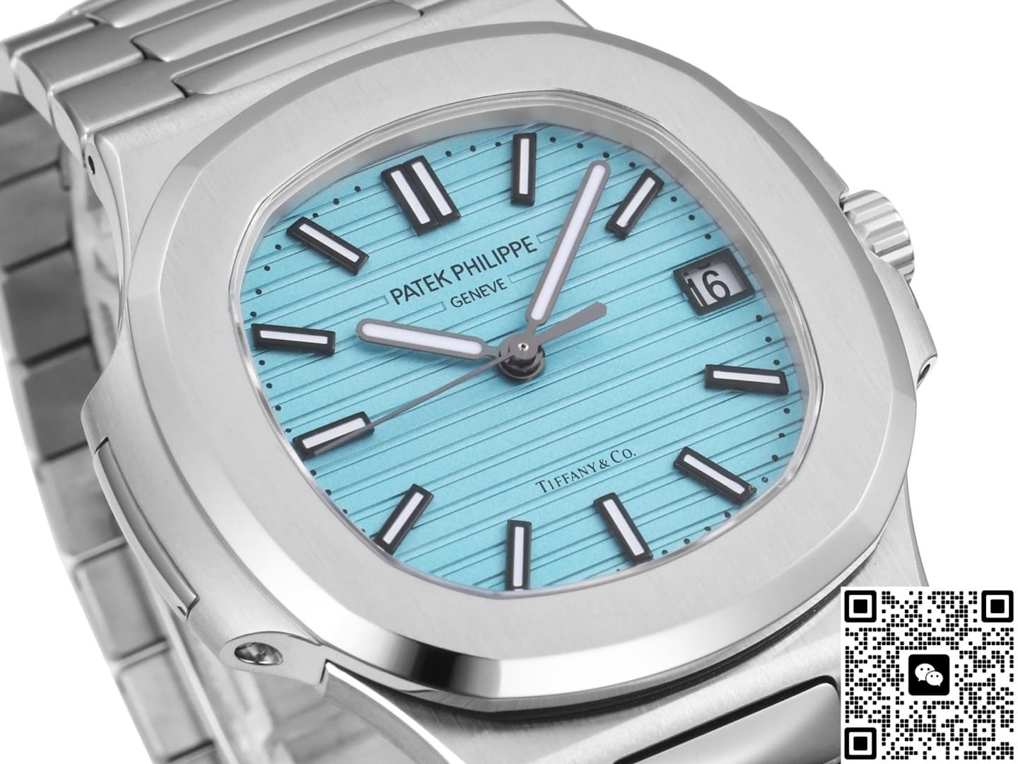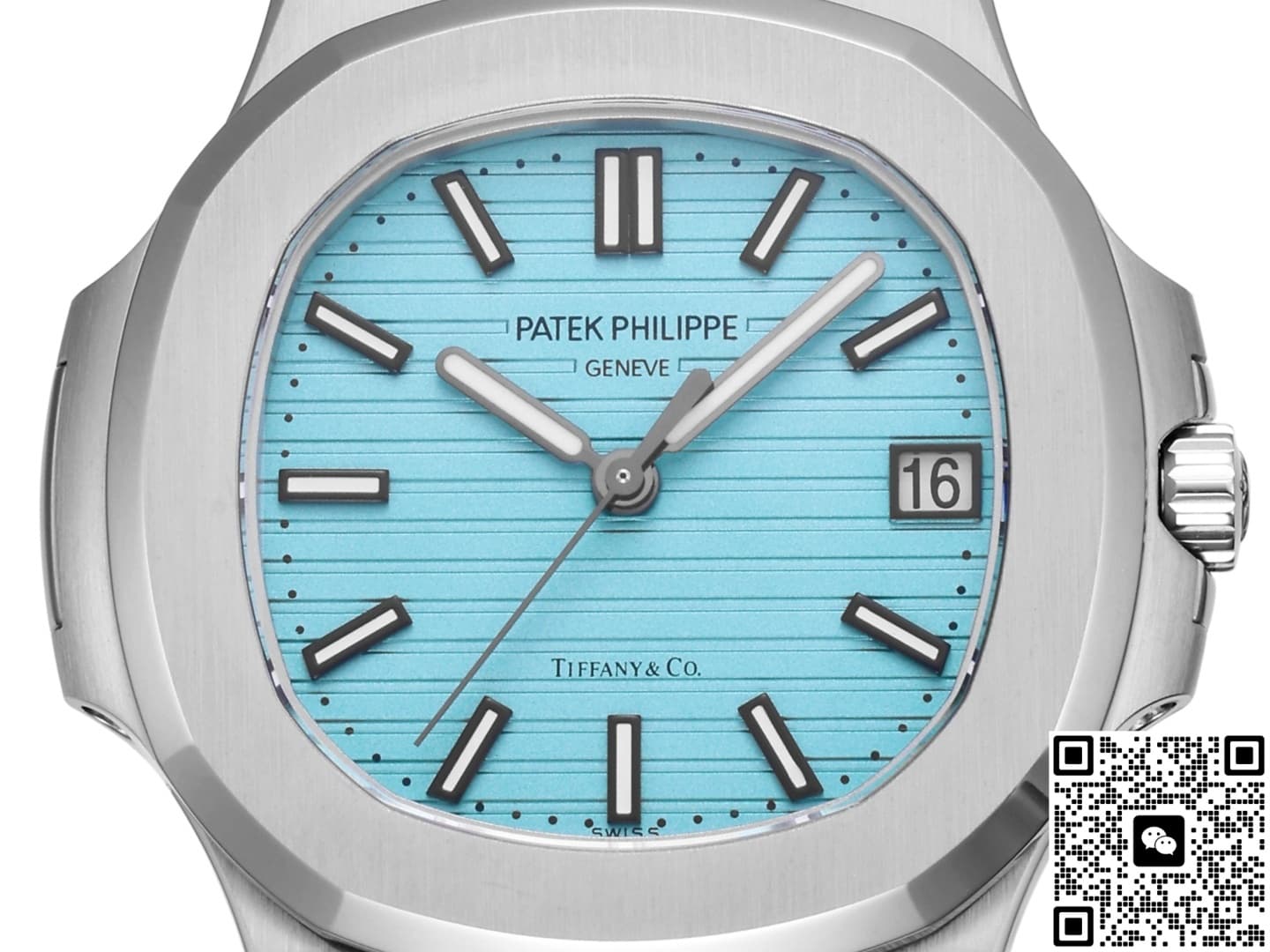 BBF厂高仿手表百达翡丽鹦鹉螺5711-1A-018把正品的蒂芙尼蓝还原到了极致,为了还原正品蒂芙尼蓝盘在不同光线下的立体感和深度,BBF工厂采用进口三宝铜材质胚面,在经过多层渐变喷涂技术处理之后让盘面边缘在特定角度下呈现出微微的深色阴影,从而营造出由浅至深的视觉过渡效果,这是一种明亮,清爽,带着轻微绿色调的淡蓝,还原难度可想而知,可BBF工厂做到了,甚至比3K工厂蓝得偏绿的蒂芙尼色更加还原正品。表壳结构同步正品的舷窗式三层结构,八角形的外圈外圆内方,表盘横向压纹很清晰,立体感也强,在光线折射下呈现波光粼粼的效果。立体条钉刻度边缘进行了细致的打磨,而且瑞士 Super-LumiNova BG-W9纯白夜光填充的很均匀,灯光下也不会发黄。日历字体重新开模印刷,而且把字体加粗了,解决了3K工厂字体偏细的问题。总结来说,BBF工厂对比3K工厂百达翡丽蒂芙尼蓝在表盘方面细节表现好的太多了。
