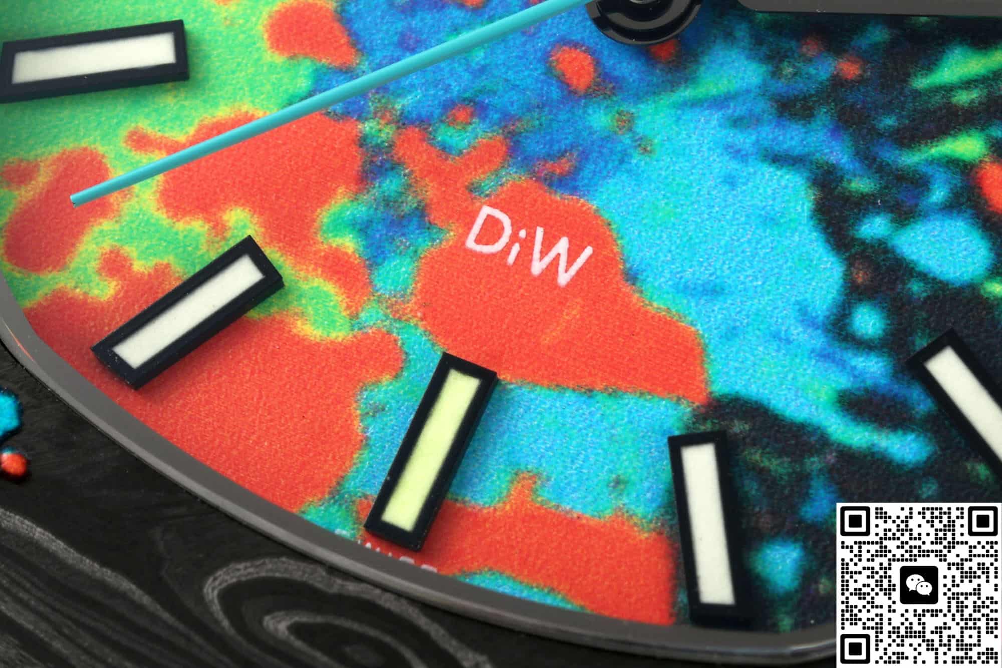 DIW厂为立体条形时标和三针都填满了夜光涂层,目的就一个,暗光下也能快速对时。时标夜光填得均匀不溢出;三针夜光颜色和时标同样是一致的;以及亮度衰减是稳定的,不会出现某几根针突然暗下来的情况。你自己拿手机灯照一下再放暗处,很快就能看出DIW厂的做工水平,包你满意。