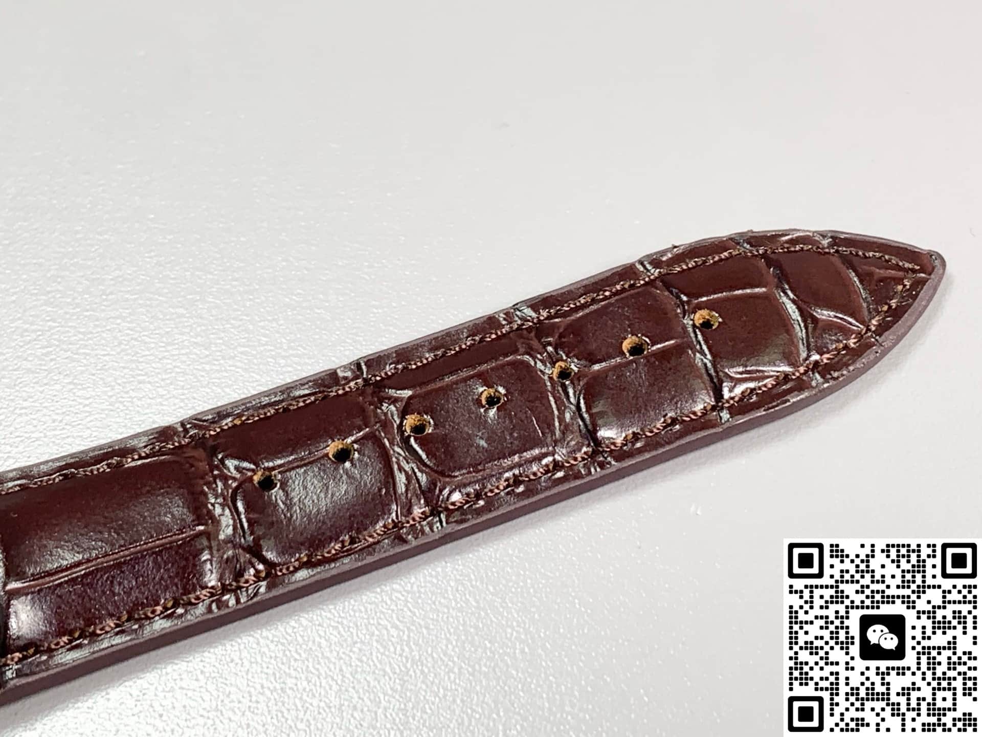 不得不说,这款手表有着非常漂亮的外型,看起来和正品的效果可以说是一模一样的。它看起来如同森林中迷失的精灵,有着大方而秀美的气质。表盘制作得很光滑平整,和正品的颜色一样,这足以证明GR工厂的高端调色技术。这款手表的表径是40毫米,它的时标是罗马数字形式,牢固地镶嵌在表盘的边缘。可以看出来时标精致程度是很高的,颜色也上得十分均匀。这款手表的时标内还有一圈刻度,印刻得非常清楚,基本上没有什么模糊或者是重叠的瑕疵。两块显示屏放在了表盘的正上方,下面则是品牌标识,月相表盘是在表盘的指针中央正下方的位置。这些部分看起来都比较协调,对于有强迫症的表友来说,看起来是很舒服的。这些细节不仅仅只是和正品相似,制作的工艺是非常高级,呈现出来的效果让人十分惊喜。指针也是个经过特殊设计过的,是两头尖、中间部分圆润的形态,但中间又做了镂空设计,看起来的效果和这款手表的风格正好契合。整体为墨绿色的表盘搭配上一条皮质表带,不仅好看,而且佩戴的感觉也是十分舒适的。