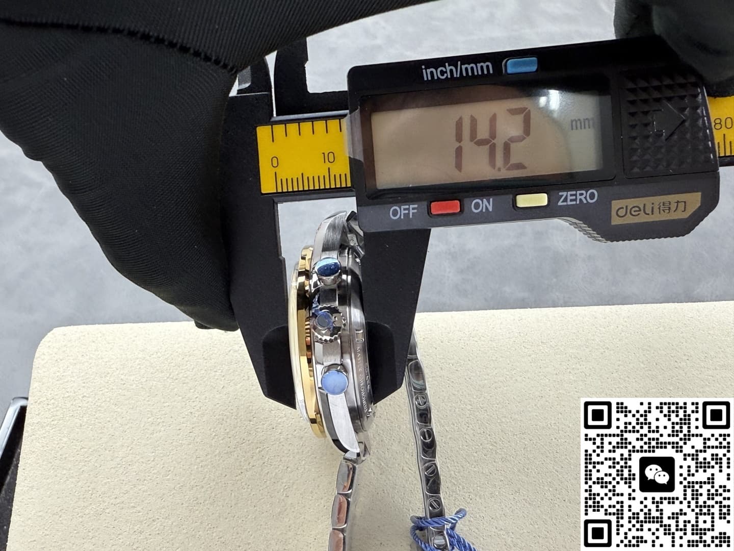 很多朋友好奇N1工厂机芯怎么样?N1厂高仿手表欧米茄超霸310.20.42.50.01.001真正让表迷们心甘情愿掏钱的,是它自称自产的9300一体机。N1工厂采用国产A7750为底板,把传统水平离合和凸轮拿掉,重新CNC加工导柱轮和垂直离合组件,让启动或者停止的手感由生涩变得清脆,更加接近欧米茄原版9300。发条和传动轮系则继续使用7750原厂件,保证了零件通用性和后期维护的便利。对于噪音方面,N1工厂也做出了对策,它把自动陀轴承升级为进口滚珠,降低了上链的噪音。尽管N1工厂已经尽量把厚度减厚了,可是由于基础是7750,整芯厚7.9MM,比正品9300厚了2MM,导致整表厚度还是比原装厚了0.4MM,这也是目前N1工厂还无法解决的物理极限,相信他们未来可以做到更好。在经过N1工厂一系列改装之后,在功能上都可以正常的使用,六点位的日历瞬跳,三点位同轴指针也实现了和正品9300完全一致的三眼两针排列,计时按钮手感清脆,动力储蓄也足够放置一夜之后正常运转,打破了早期夹板一眼假的僵局,N1工厂欧米茄值不值得买从机芯就可以看出来了。N1工厂这款阿波罗11号50周年超霸不管是外观,机芯还是包装都一步到位,而且性价比非常高,如果你渴望用不到正品零头价拿下一块可以戴,又可以讲故事的登月纪念款手表,N1工厂这款50周年纪念款超霸依旧是2025中国高仿手表市场里面最值得考虑的选择。
