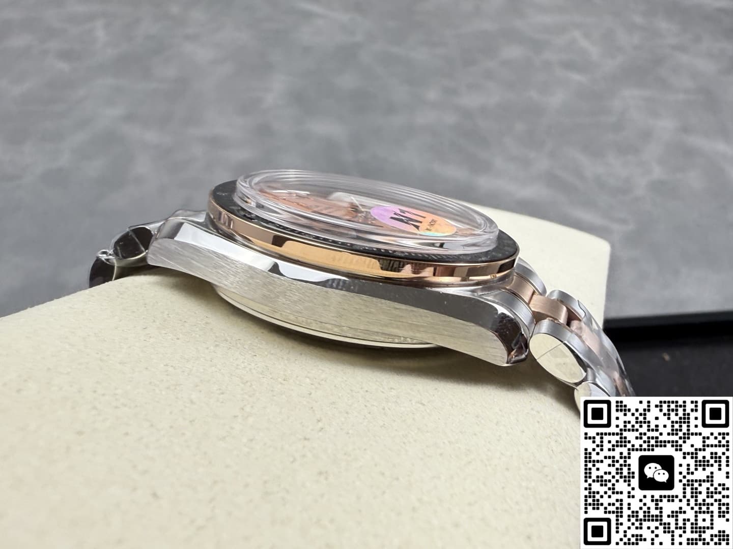 N1工厂欧米茄和正品对比起来高度相似,原因就在于它在材质和工艺上丝毫不偷懒。316L精钢材质的表壳使用CNC一体成型,再PVD厚度5 mils玫瑰金,两年内正常佩戴基本不会掉色。而表圈使用的是韩国进口氧化锆陶瓷,这种陶瓷硬度系数非常高,而且抗刮性也比铝圈的好。蓝宝石水晶玻璃镜面双面都有镀膜,内层防眩膜是淡蓝紫,呈现出和正品一致的光彩,而且通透度达到了92%以上。N1工厂为了更加还原正品,在把头,按钮,表扣上都做了间金的处理,外层玫瑰金,内层拉丝钢,增强了耐磨性。防水方面则在头粒加一道O-ring,生活防水30M,完全可以应付洗手或者雨水,不过不建议带去游泳或者冲热水澡。表带出厂是标配的316L间金钢带,在中段有抛光加三节拉丝,另外也有送一条国产氟橡胶带,内侧有月球表面立体纹,平常不管搭配哪条都很百搭。