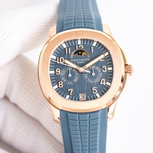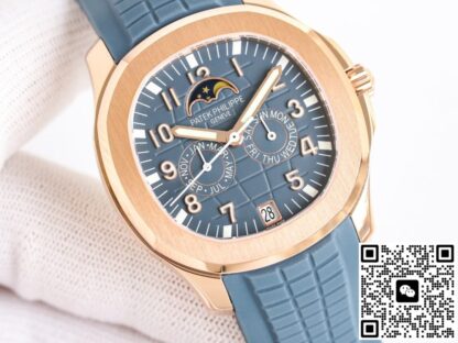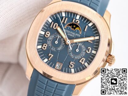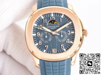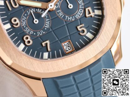 咱今天要讲的是高仿手表百达翡丽AQUANAUT系列5261R-001,作为百达翡丽Aquanaut系列的首款年历腕表,首个无钻复杂女表,理念是机械表也能同样优雅,将优雅美学与复杂机械工艺融为一体。表盘采用灰蓝色调,一款非常成功的中性风格腕表,适合追求精致运动的男/女性佩戴者。