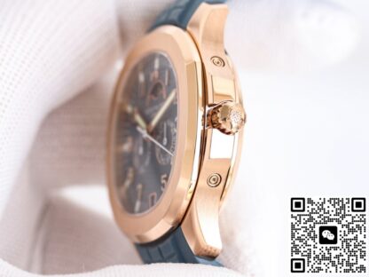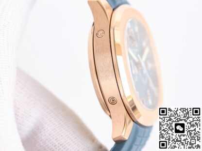 不少人在购买前都肯定有个顾虑,这款百达翡丽AQUANAUT系列5261R-001高仿手表外观真不真?会不会一眼假?我敢打包票,完全不会!现在都是按正品开模了,工艺打磨处理这块也向正品看齐,阿拉伯数字时标稳稳的站在经典的棋盘格凸纹上,格子 2.8 mm 宽,深度 0.15 mm,其余为条钉,全部填充白色 Super-LumiNova®,夜光呈绿蓝色,高仿手表灰蓝色表盘调色这方面,就算你拿正品放一块都难以分辨出来。表盘功能一个都不少,12 点的半圆月相窗,电镀蓝夜空; 3 点位星期指针盘;9点位月份指针盘和星期盘对称,6点位的时标被白盘黑字的日历窗代替。高仿百达翡丽5261R-001手表采用玫瑰金色表壳,Aquanaut系列标志性圆润化八角表圈,表圈和表壳一体成型,采用抛光+纵向缎面拉丝交错,直径39.9mm,表壳厚度在装配年历模块后仍控制在11mm内。高仿手表百达翡丽AQUANAUT系列5261R-001玫瑰金色表冠调节操作也和正品一样,第一档不用拉出,顺时针手动上链,满立链手感会明显变重,第二档拉出一格,逆时针调日历,顺时针调月份,第三档再拉一格,停秒,调时针,表冠还有护肩,护肩与中层壳体零间隙,采用同胚切削,整块玫瑰金色“挖空”成型。表带采用复合橡胶材质,厚度在3.2mm,内侧做“横向排水槽”,夏季贴腕不闷汗,表带面上再次压出格子浮雕和表盘相呼应,采用玫瑰金色折叠扣,内侧微调齿条可 2 mm 无级延伸,方便温差涨缩。百达翡丽5261R-001高仿手表都是按照正品工序进行制作,打磨角度都一个样,完全不用担心一眼假这个问题。