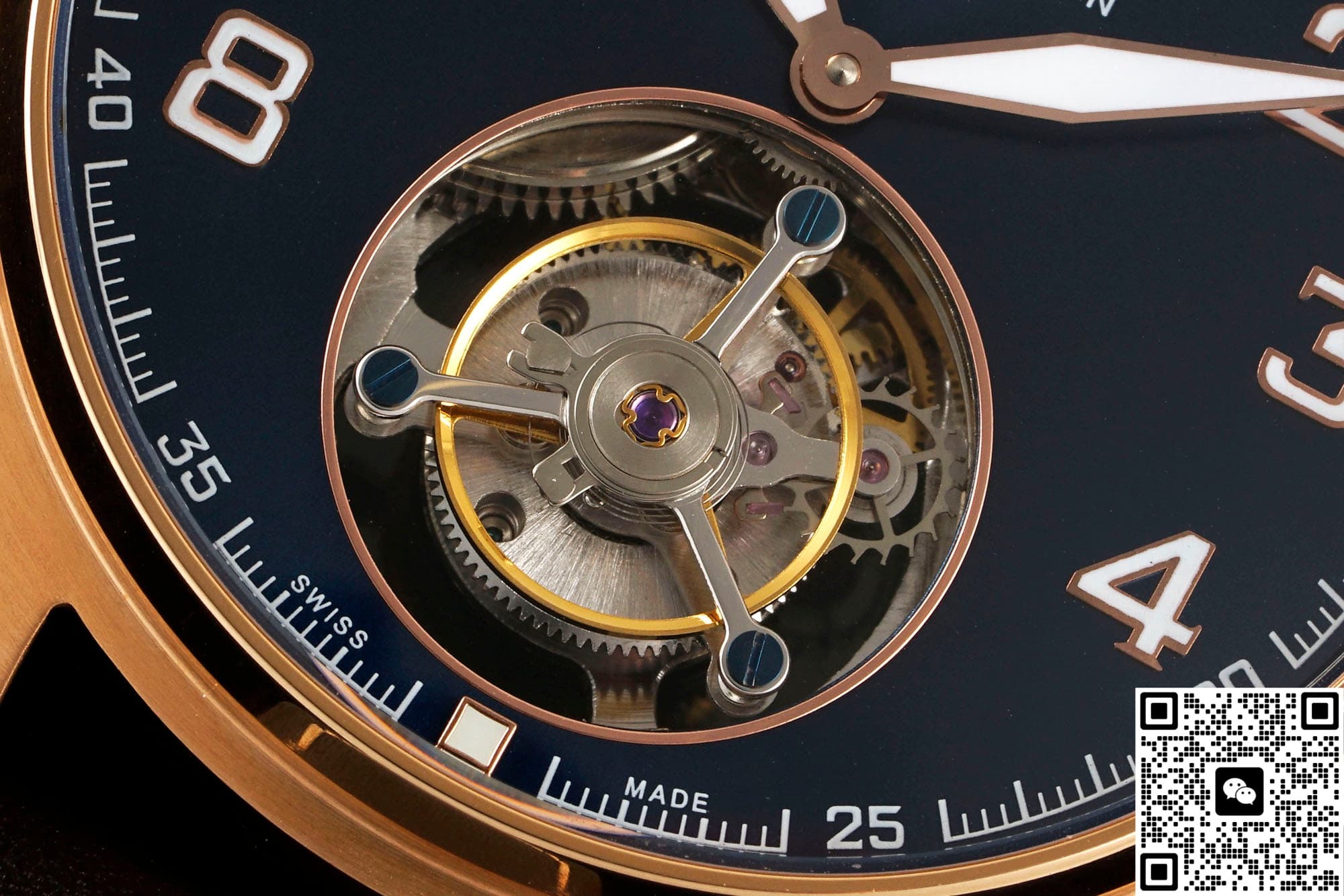 RMS工厂在复刻陀飞轮方面可谓是得心应手,完美的还原了原版的陀飞轮结构,六点位的悬浮陀飞轮360°旋转,完全真实转动,不是像某些低端高仿小厂那样的装饰性结构。43MM的大型飞行员风格壳套非常具有辨识度,蓝色太阳纹表盘搭配金边指针和时标,形成强烈的视觉对比效果,金色的镀金表壳尽显奢华气质。这款IW329502作为IWC小王子特别版,非常具有收藏的价值,但是正品高达几十万的价格却让人望而却步,RMS工厂这次2025最新推出的万国陀飞轮顶级克隆版本成功的响应了市场需求,让更多喜爱这款万国陀飞轮的朋友们也可以体验到几十万的奢华感受。