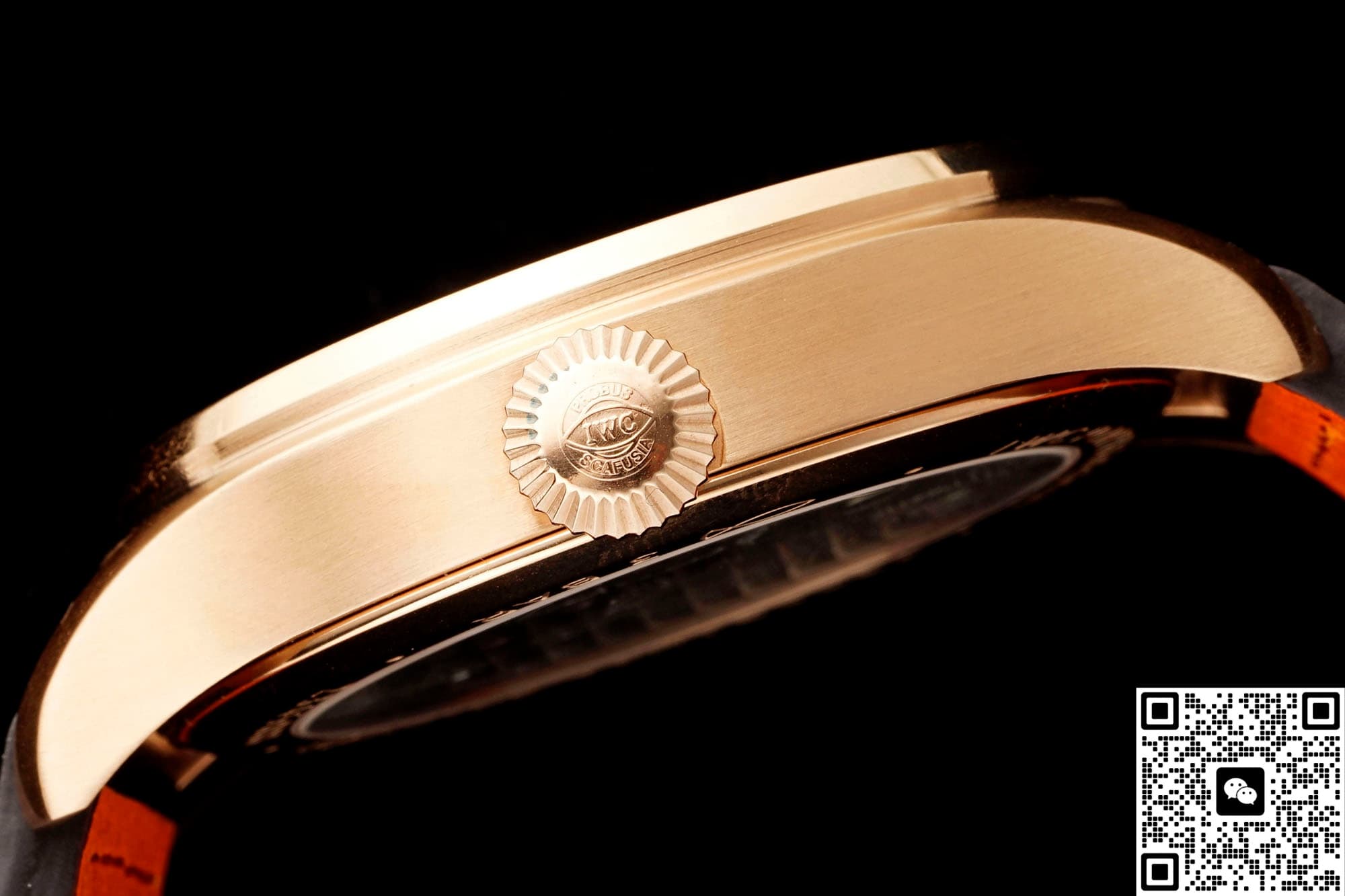 那这款RMS工厂陀飞轮高仿手表做功怎么样呢?深蓝旭日纹表盘也是这款顶级陀飞轮克隆版本的标志性设计,象征着故事中深邃迷人的夜空,RMS工厂先使用黄铜作为基底冲压,这种材质延展性很好,太阳纹也更容易拉得亮。六点位CNC挖视觉焦点陀飞轮窗口之后先做太阳放射纹车削,再电镀3微米深钴蓝,最后再喷涂两道透明保护漆,陀飞轮窗口做了45度倒角抛光,就算用放大镜也没办法看到边缘有毛刺的存在,经过盐雾测试48小时之后完全合格,在阳光下呈现出和正品一样的120道均匀太阳放射线,整体出来的蓝色旭日纹表盘和正品放在一起也几乎察觉不到色差的存在。金色的表壳RMS工厂则使用电镀的工艺,在316L精钢壳镀上一层3微米的18K金涂层,在经过手工抛光和拉丝之后呈现出来和正品同样的质感和色泽,保养得好的话甚至可以达到两年以上不掉色。表带搭配一条棕色小牛皮表带,有一种复古温润的感觉,整体的色调也非常贴近小王子的色调,温暖而又高贵。