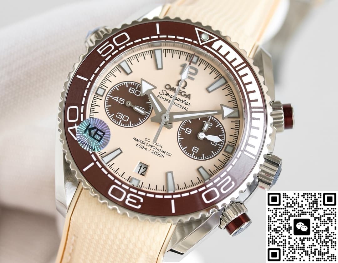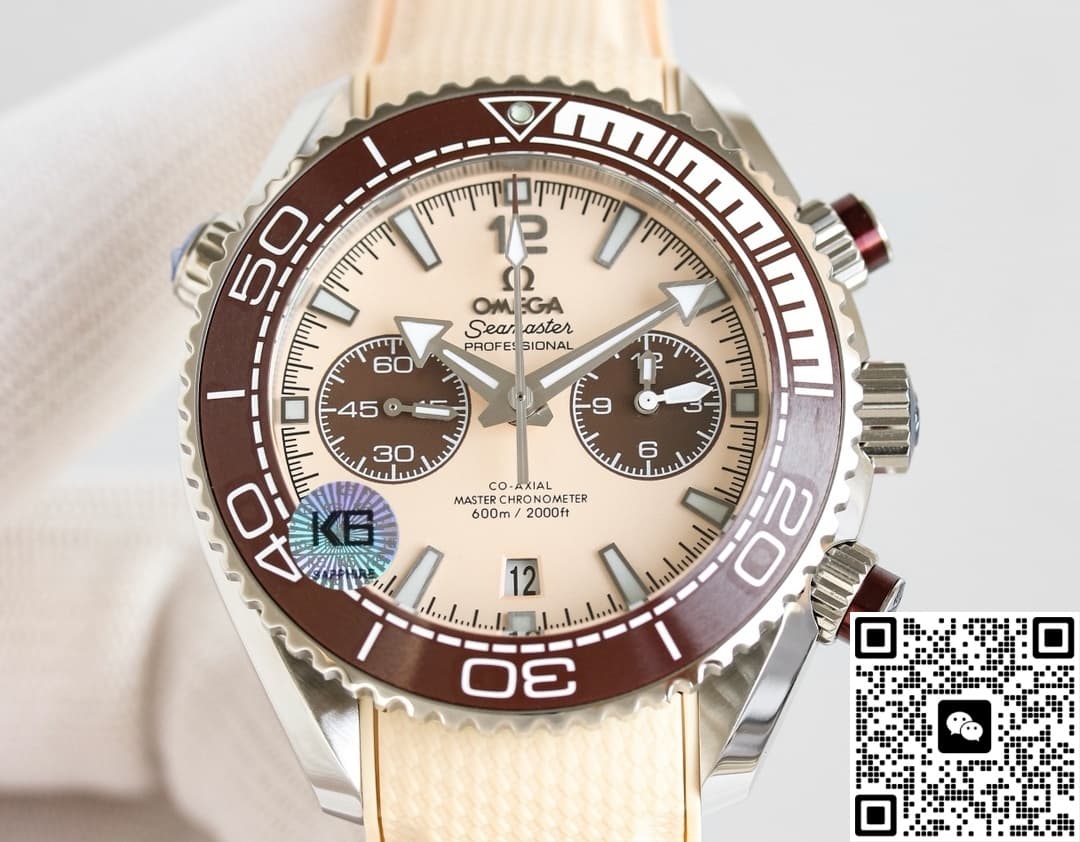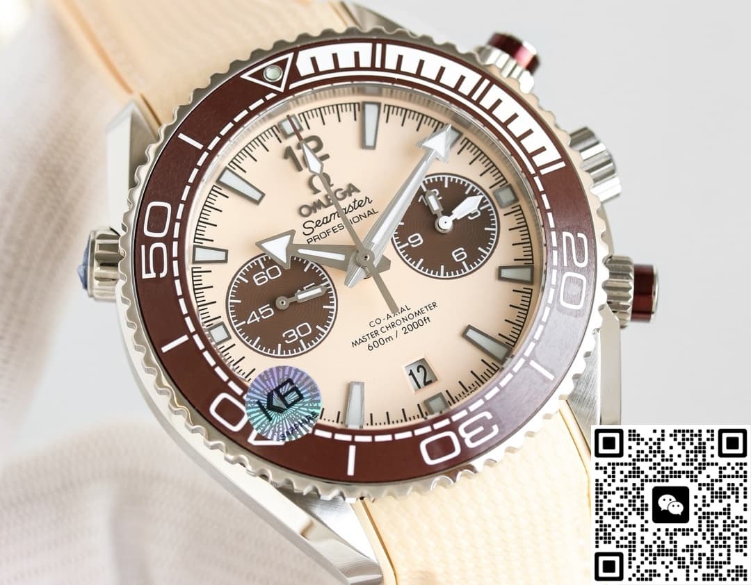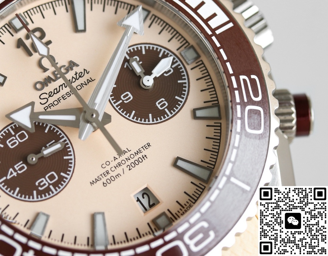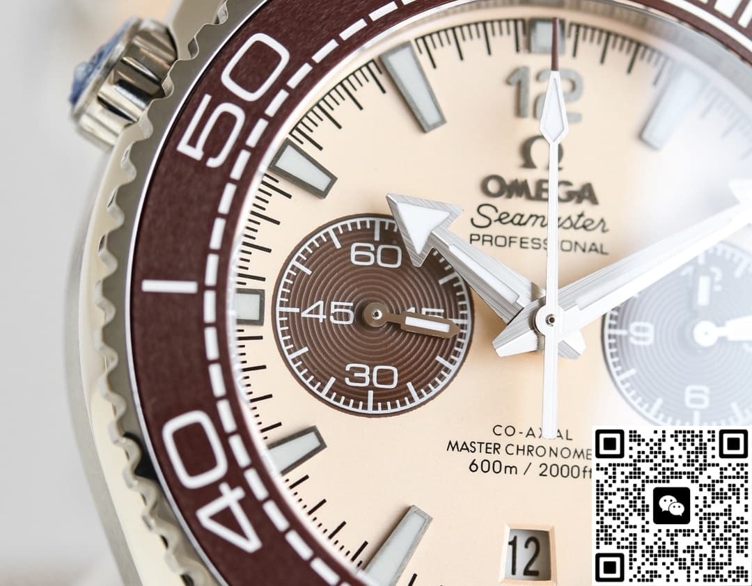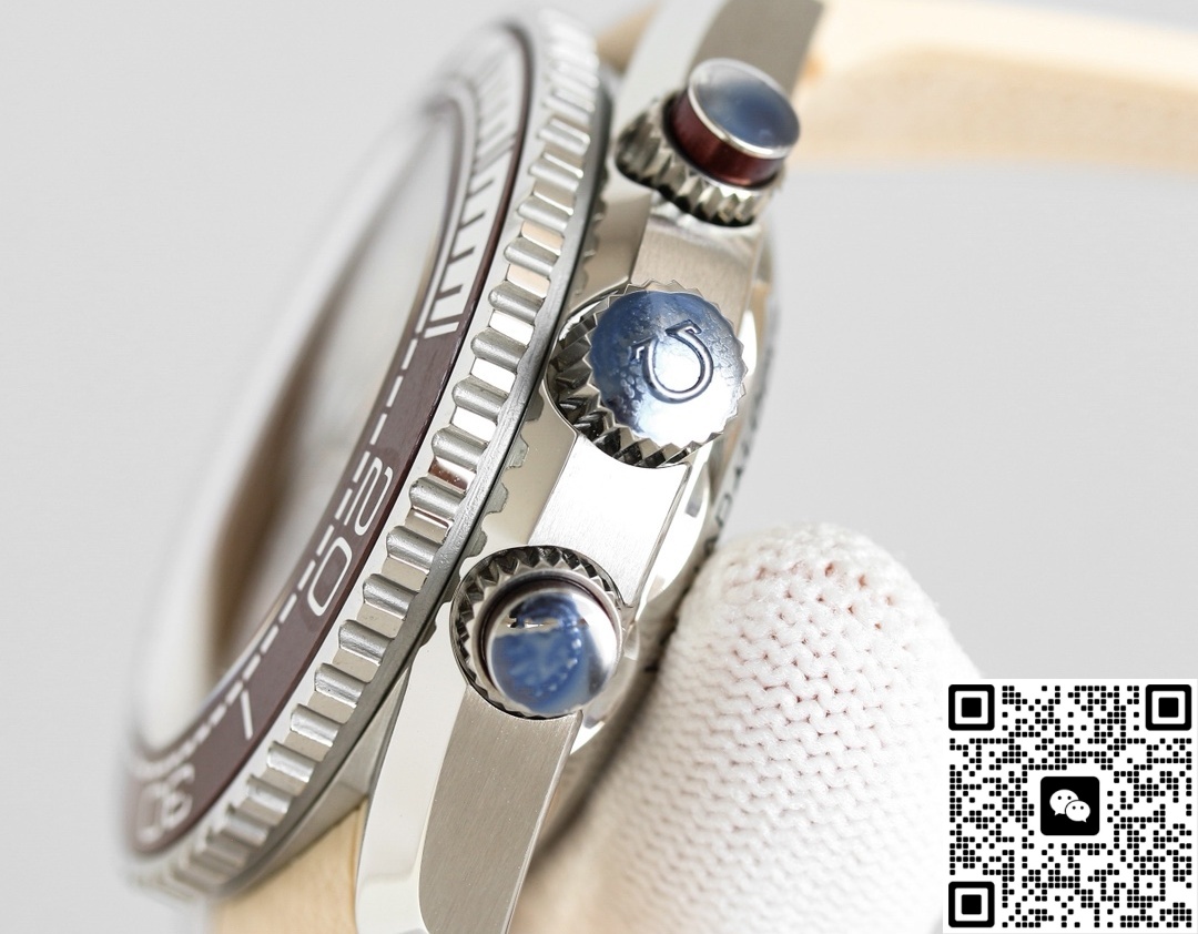 能把稀缺的配色、大表径和陶瓷圈一次性集齐,还把价格压在三千元以内的,TVS工厂这款欧米茄海马215.32.46.51.09.001海洋宇宙600米计时款几乎是独一份,它最吸引人的地方就是肉眼可见的温柔军事风,45.5毫米的大罐头轮廓,却用米色喷砂盘面搭配棕色小表盘,一眼看过去既有专业潜水表的硬朗,又带着复古军表的温暖,不管通勤、海边甚至搭配针织衣都非常出挑,完全跳脱蓝黑盘潜水表的审美疲惫。