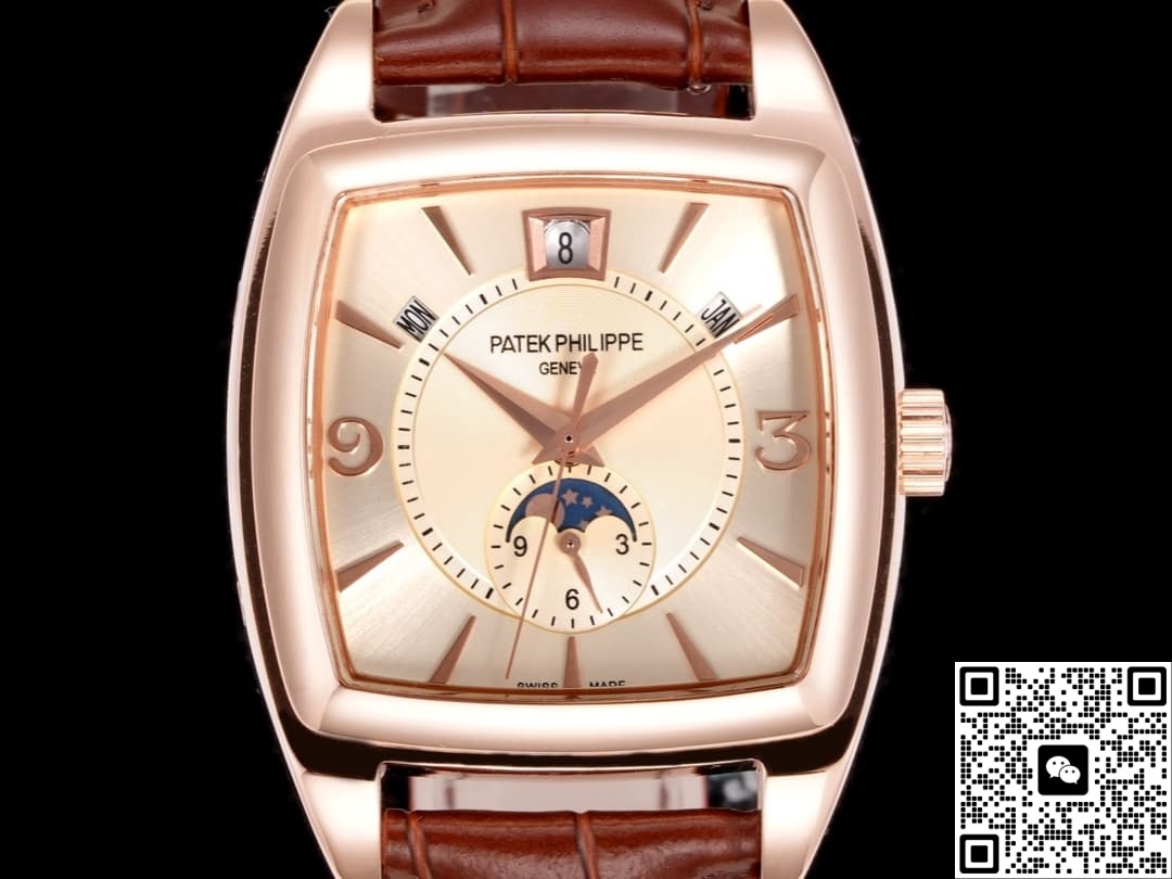 能把复杂功能和优雅正装同时做到令人心动的产品不多,而TW工厂2025最新推出的百达翡丽复杂功能时计5135J-001复刻款,正是这样一枚让人愿意花时间端详、更愿意日常佩戴的小酒桶。它从来不靠夸张的尺寸吸睛,也不以炫技的镂空取胜,却把年历、月相、二十四小时显示等等使用功能浓缩在温润的玫瑰金表壳里,用恰到好处的弧线提醒其他人这是一枚为懂表的人而生的计时腕表。