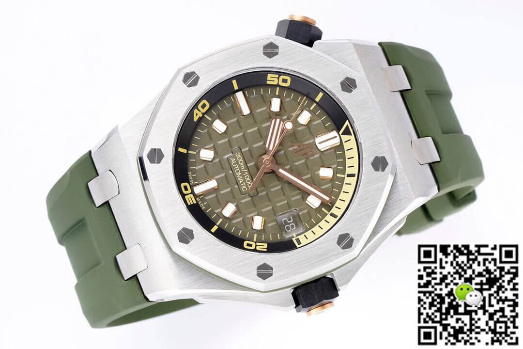 声明:ZF厂爱彼15720ST.OO.A052CA.01,复刻爱彼皇家橡树离岸型15720ST.OO.A052CA.01精钢绿盘男表价格_多少钱_报价-实名表业高仿手表商城,实物拍摄,如实描述,合理价格,保证物有值,价值大于价格,如果您是极端完美主义者,建议不要购买。我们的这些商品都只能保证值这个价格。 盈利薄弱,请务必选好款式,理性购买。如是质量问题退换货,请务必保证和我们发过去的包装一样,务必确保手表无佩戴无任何损伤。所以在您发回来之前,请先千万不要截表链,试佩戴手表时,请勿撕去手表的保护膜,不要扔掉手表的原厂外包装,按我们寄给您的原样寄回。不然我们不做换新只做保修处理,如果您签收货物之后,戴了之后,仅仅是因为款式问题需要退换货物,本店概不退换,请您理解,手表类商品属于首饰类商品,试想一下您肯定也不愿意戴别人戴过的手表 。请您的理解哦。欢迎广大顾客对我们进行质量和服务监督。谢谢合作!