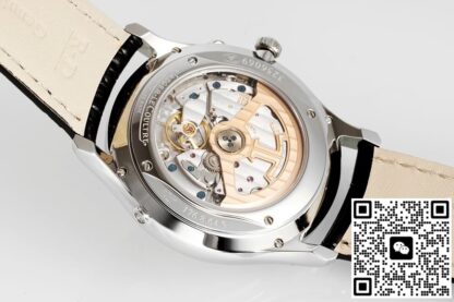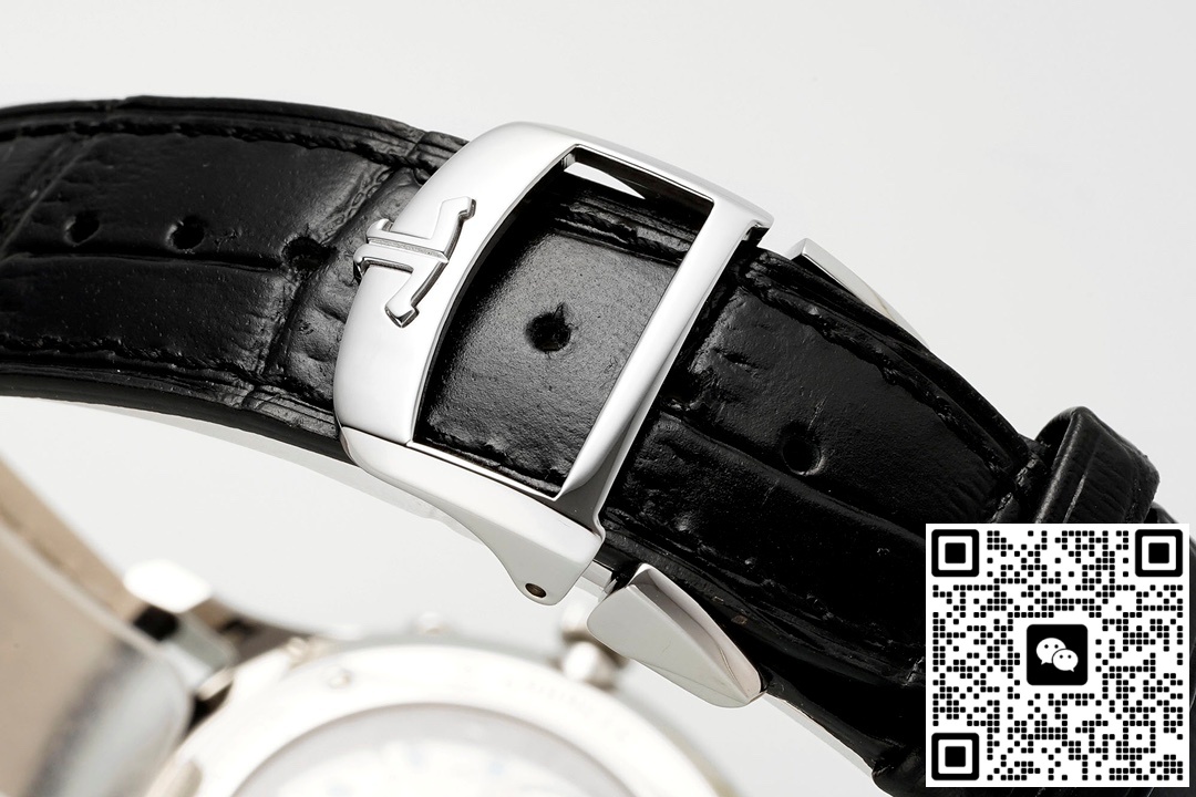翻过表底,你就会发现,ZF工厂V2版高仿手表积家超薄大师Q1368480的底盖和表镜都是采用蓝宝石水晶玻璃,底盖厚度约0.8mm,内面还设有防反光镀膜,能最大化的展现超级克隆925机芯的镀铑桥板与玫瑰金色镂空陀轮,蓝宝石和钢圈间隙采用特氟龙密封圈,保证了超薄表体和防水性。采用真鳄鱼皮表带,上边还有竹节纹,纹理较为对称,内衬填充天然防水油脂,亲肤柔软贴手,而且戴的越久也会更贴合你的手腕弧度,双针手缝线,同色暗缝,背面没有线头,双折叠扣,按压两侧按钮松开,闭合时“咔嗒”两声上锁。