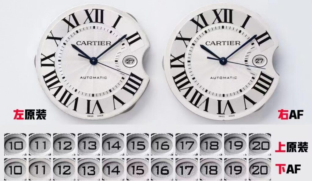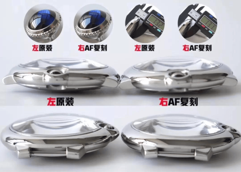 From the case thickness: RAY specifically measured the thickness of both the genuine and AF Factory’s Cartier Ballon Bleu. You can see AF Factory’s error compared to the genuine is less than 0.1mm. For a factory known for high value, that’s really well done. You won’t see a difference wearing it daily.