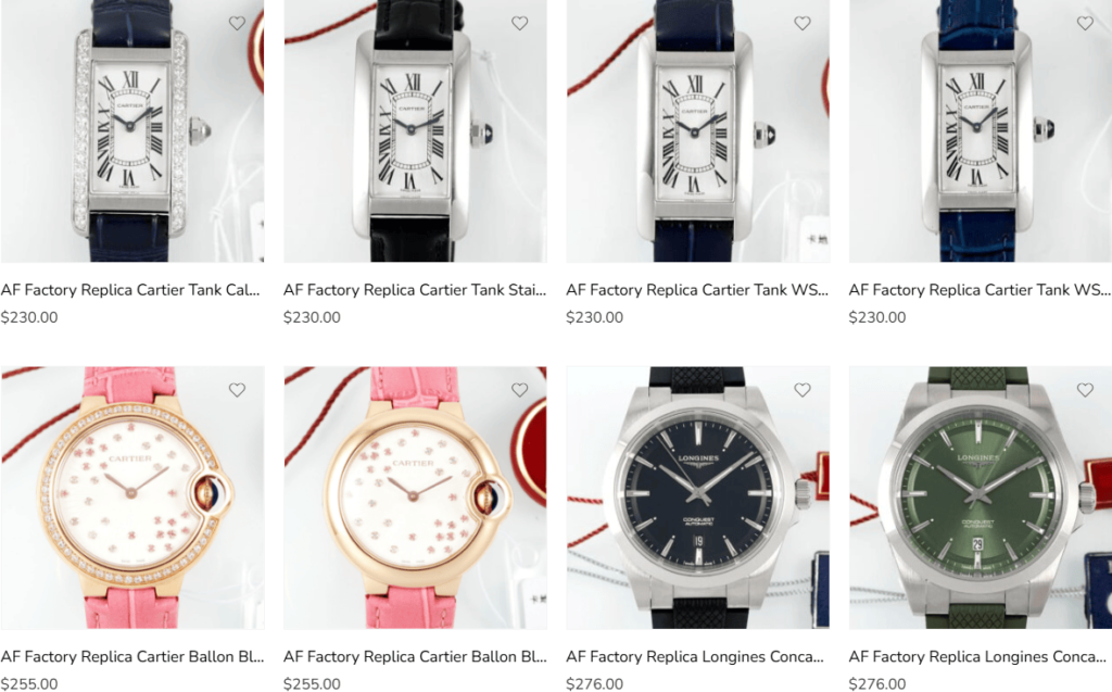RAY specially put together a list of AF Factory’s most popular clone watch models right now. Found the best sellers are all around the Cartier and Longines, with prices around $300, which is very cost-effective.
