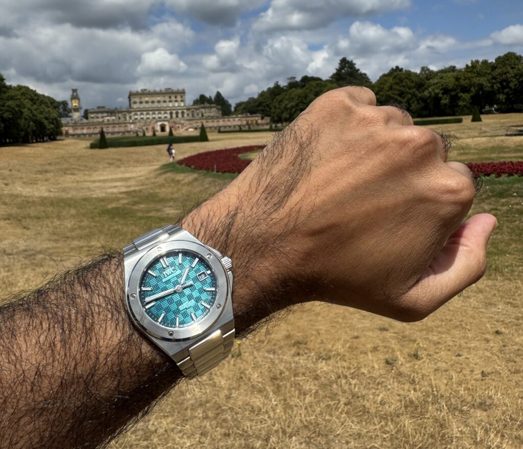 You can still see the background pattern behind the IWC logo.