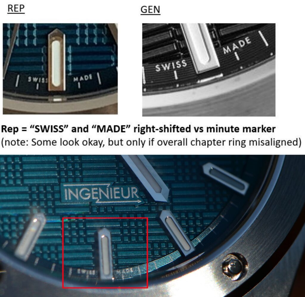 On some batches, the “Swiss made” text is positioned slightly off.